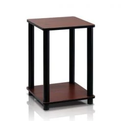 Turn-N-Tube 14.6 in. Columbia Walnut/Black Square Wood End Table with Open Shelf by Furinno