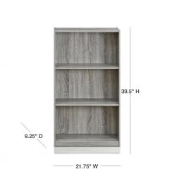 39.5 in. French Oak Gray Wood 3-shelf Standard Bookcase with Storage by Furinno