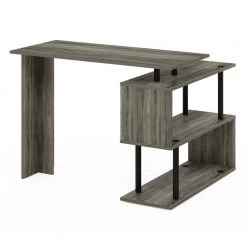 Moore 39.4 in. L-Shape French Oak / Black Computer Desk with 3-Tier Shelves by Furinno