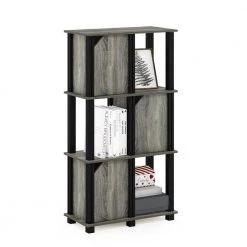Brahms 43.8 in. French Oak Grey 4-Shelf Etagere Bookcase with 3-Doors by Furinno